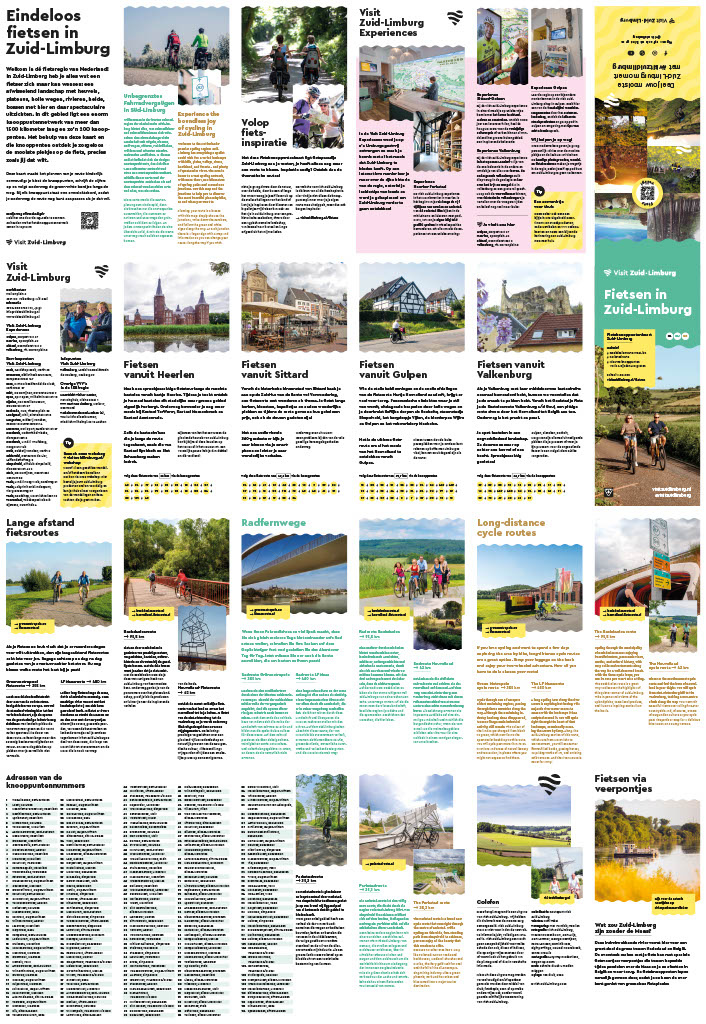 De geheel vernieuwde fietsknooppuntenkaart 2025 laat je Zuid-Limburg ontdekken als fietsparadijs. Langs de Maas, over de heuvels en door uitgestrekte bossen: met de fietsknooppuntenkaart krijg je snel overzicht over het gebied en plan je makkelijk een mooie fietstocht. Recente wijzigingen door de Parkstadroute, Gulpen-Wittem, Echt-Susteren, Stein en Meerssen zijn uiteraard meegenomen.